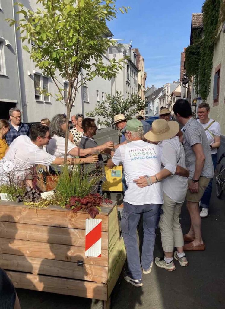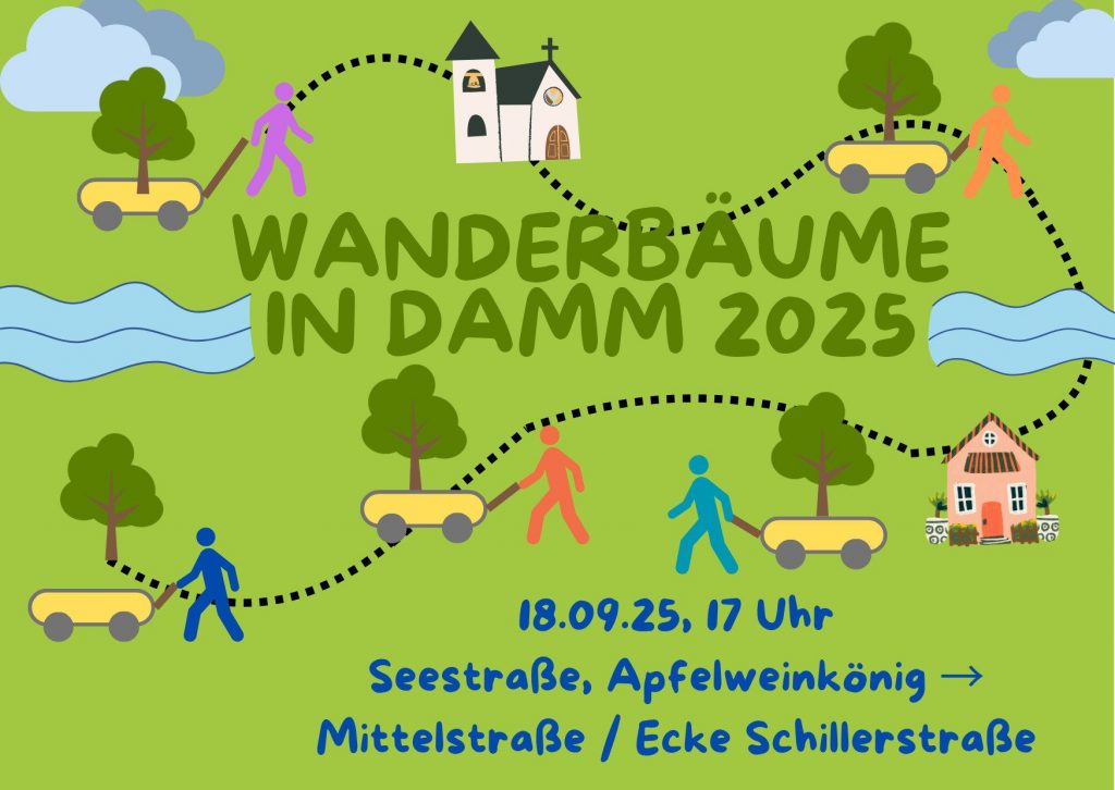 Am Donnerstag, 18.09.2025 um 17 Uhr wandern die Dämmer Wanderbäume vom Apfelweinkönig in der Seestraße in die Mittelstraße 38, in direkter Nachbarschaft von GESTA.