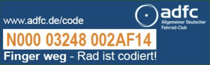 Mit der Codierung soll dem Diebstahl von Fahrrädern wirksam begegnet werden. Die individuelle Code-Nummer auf dem Fahrrad-Rahmen stimmt mit den persönlichen Daten des Fahrradeigentümers überein. Dadurch kann leicht festgestellt werden, ob ein Radler der Eigentümer eines Fahrrades ist. Ein gestohlenes Fahrrad findet rasch wieder zum Besitzer zurück.